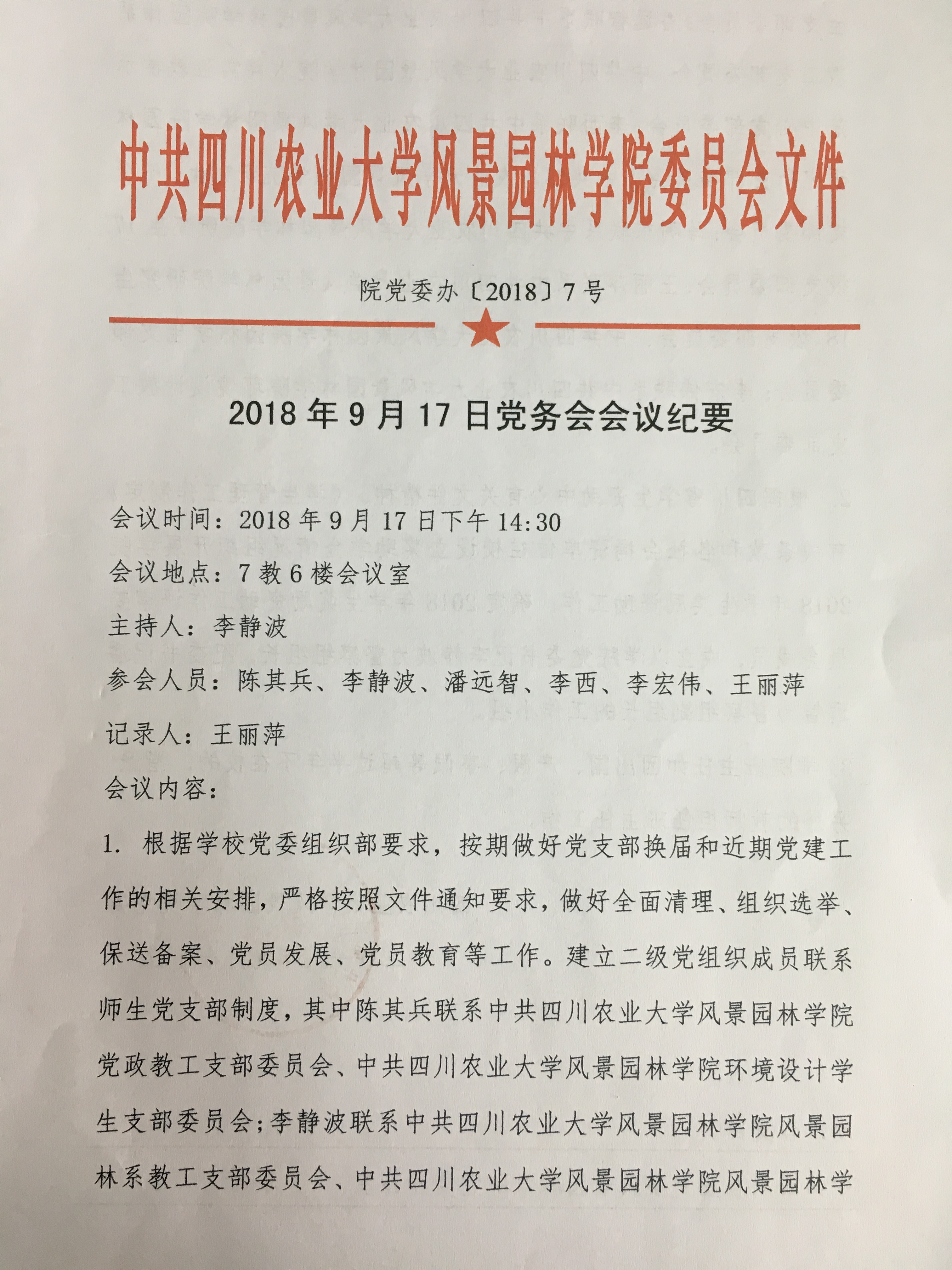 2018年9月7日党务会会议纪要
