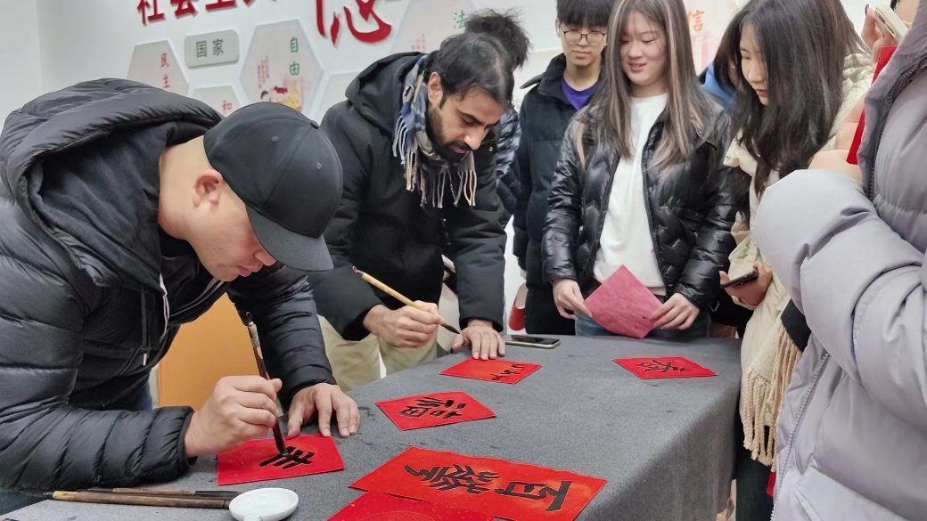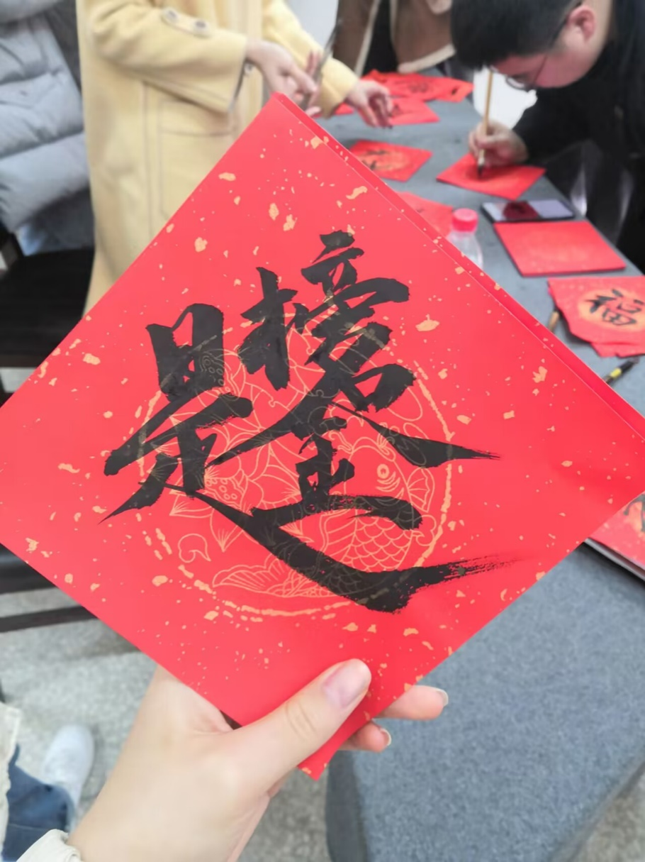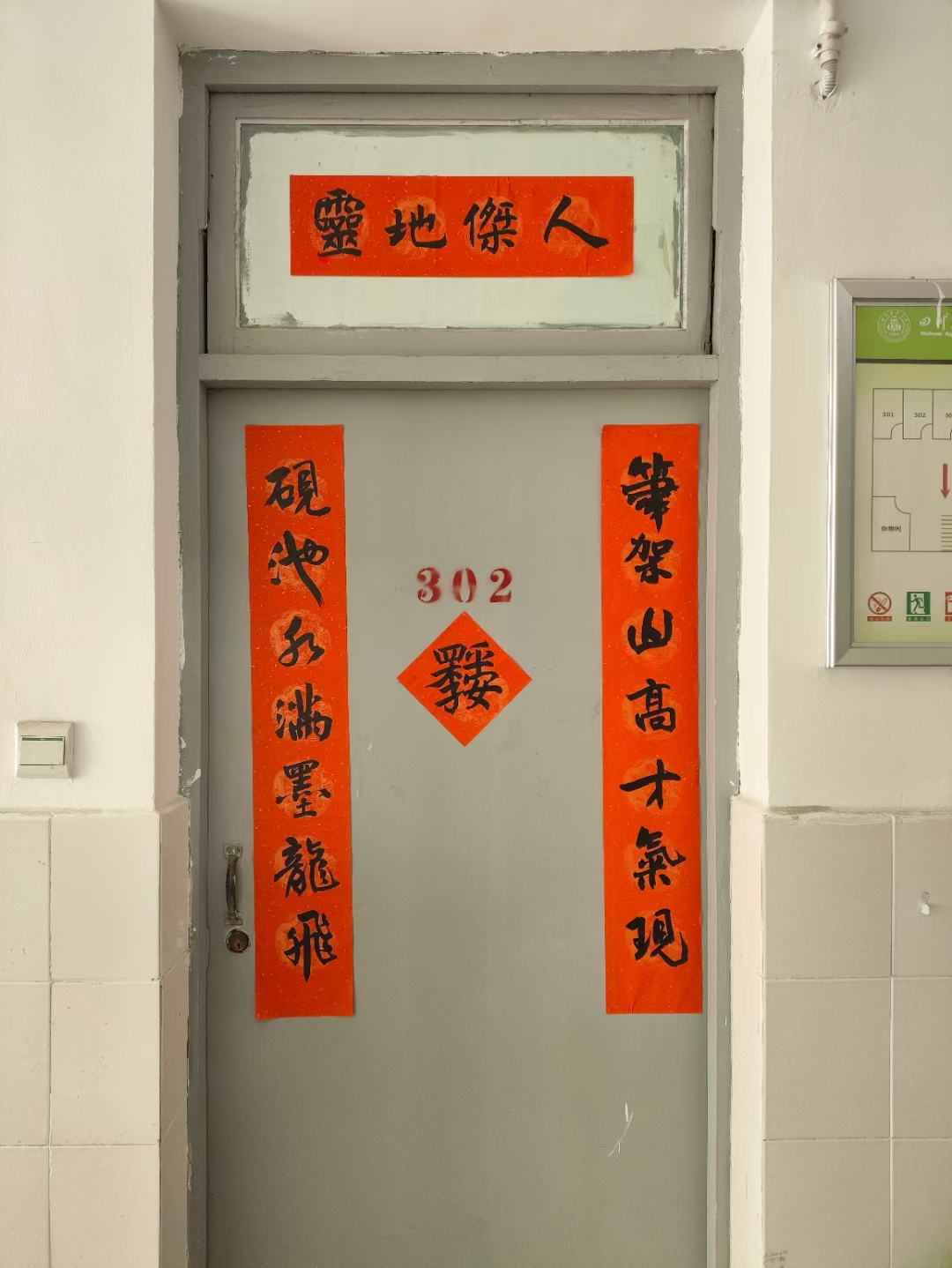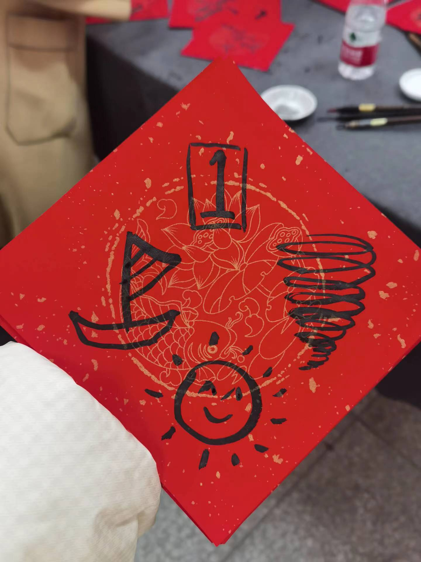 揭牌仪式结束后,工作室开展了一场主题为“妙笔迎春,墨香传情”师生联动美育文化体验活动。工作室邀请“川台交流融合突出贡献奖”获得者、风院台籍教师张益昇及环境设计系万蕊老师、员工党员、入党积极分子和职工一起,共写春联、共绘福字,传承中华文脉、传播传统文化。参与活动的同学还将师生共同手写的春联贴在寝室门口,传递新春祝福。