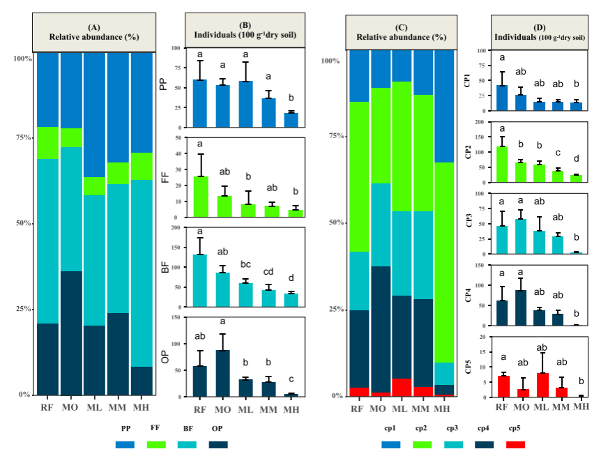 图2示:具有K-对策的杂-捕食性线虫(OP)其相对丰度下降程度最高