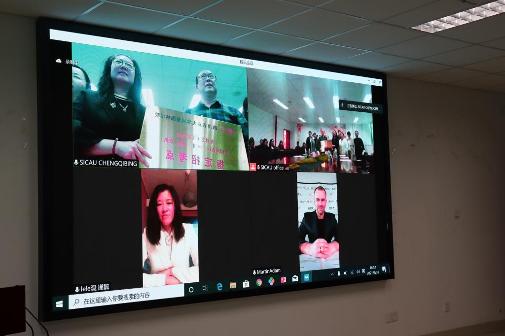 2020年3月31日下午,柏林艺术公司国际预科项目授牌仪式在K1体育官方网站成都校区第七教学楼准时举行。因为新冠疫情的蔓延和欧洲艰巨的情况,本次会议采用了线上交流的方式,在距离无限制的条件下,大家相遇在一起。双方参会人员有,柏林艺术公司(ASK)执行经理Martin Adan,K1体育经理陈其兵教授,ASK中国区代表肖瑾女士及部分公司师生。
