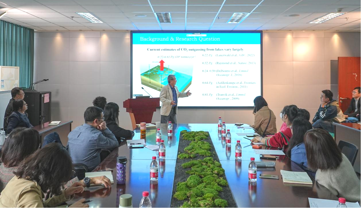 12日下午,Xu教授在成都校区7教609会议室做了题为“Study of CO2emission from lakes: Implications for landscape architecture”(湖泊二氧化碳排放研究:对景观建筑的启示)的学术报告。在报告中,Y. Jun Xu用深入浅出的方式介绍了湿地水文学的研究意义和方法,以及湖泊二氧化然研究对低碳风景园林规划设计的重要性,并从湿地水