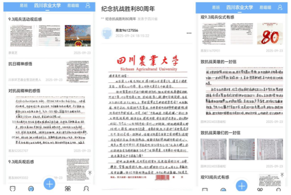 自9月21日起,青年员工们踊跃投入纪念抗战胜利主题征文活动。在“回看9.3阅兵视频,撰写观后感”板块,同学们聚焦阅兵仪式的恢弘场面、军人英姿与先进装备,抒发对强国强军的自豪与对和平的珍视,字里行间洋溢着对国防力量的敬畏;在“向抗日战争英雄书写跨越时空的信”板块,大家以真挚笔触致信杨靖宇、赵一曼等英雄,表达崇高敬意,讲述时代变迁,在跨越时空的对话中深化对英雄精神的体悟;而在“深切感悟抗战精神”板块,同学们结合史实与自身理解,多角度阐释抗战精神的时代价值与传承意义。同时,公司在易班平台设立的“纪念抗战胜利80周年”专栏也同步开展,吸引众多学子积极上传作品,集中展现了新时代青年的历史情怀与责任担当。