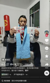 这份情谊并未止步于送出。近日,部分受助孩子与老师通过抖音等平台分享了图文与视频反馈。画面中,孩子们戴上鲜艳的围巾,用稚嫩而真诚的声音向“川农的哥哥姐姐们”表达谢意。这无疑是对所有付出者最珍贵的回馈。