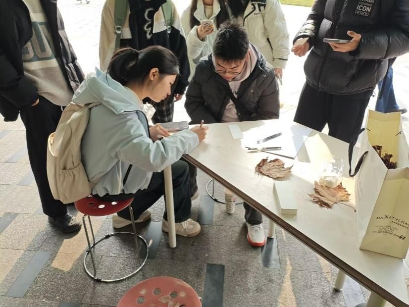 活动现场,同学们相互交流创作思路,分享秋日感悟。有的同学摘抄下励志箴言,让书签成为日常学习的精神激励;有的同学书写古典诗词,让传统文化与自然之美相映成趣;还有的同学发挥专业特长,在叶片上勾勒出校园景观的简笔画,赋予书签独特的纪念意义。一片片普通的落叶,在同学们的巧手下焕发新生,成为串联秋日记忆、承载美好期许的独特信物。
