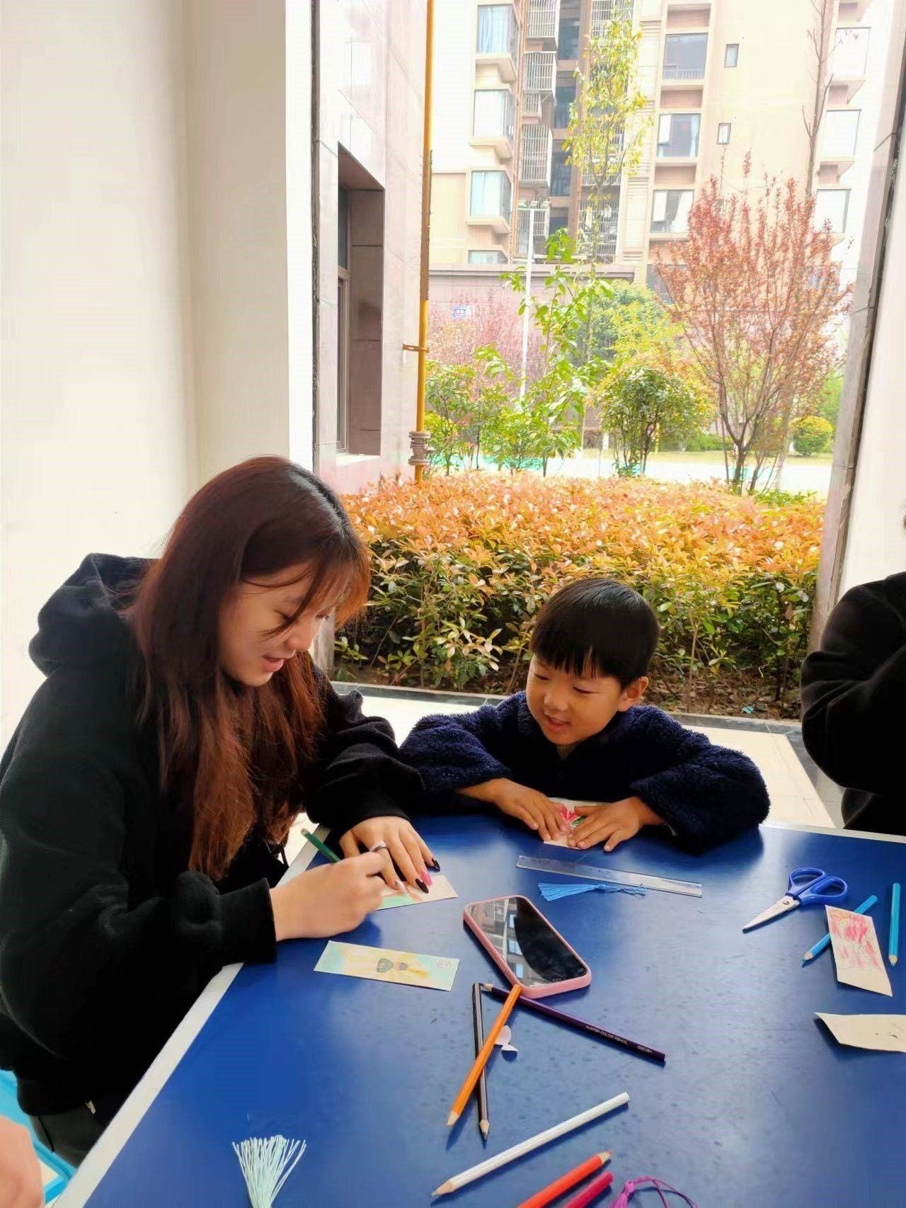 在太极社区教小朋友做雷锋精神手作书签活动