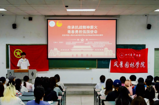 10月14日下午,由K1体育团委主办,K1体育团委直属流动团支部、风景园林202304、风景园林202403、园林202401、环境设计202403五个团支部共同承办的“传承抗战精神薪火,青春勇担强国使命”十月示范性班团活动在成都校区举行。百余名青年学子齐聚一堂,以历史对话凝聚精神力量,以实践分享锚定使命方向,以此纪念中国人民抗日战争暨世界反法西斯战争胜利80周年,为青春注入厚重的家国情怀。