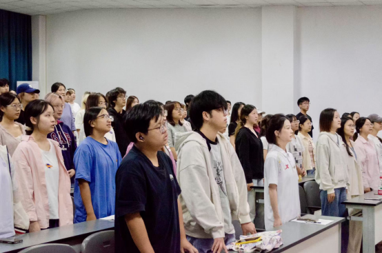 午后阳光透过窗棂,黑板上的团旗格外醒目。《光荣啊,中国共青团》的嘹亮歌声响起,全体员工肃立合唱,活动正式拉开帷幕。教室内座无虚席,不少员工提前到场翻阅资料,期待这场精神洗礼。