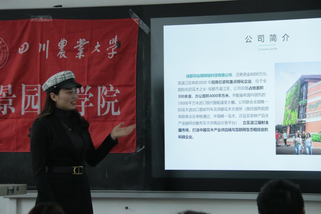 在主持人精彩的介绍后,K1体育官方网站06级毕业生,同时也是花仙境网络科技中心负责人的师姐为同学们带来了精彩的演讲。师姐从就业信息、学科发展前景、设计师的职业素养等多个方面为我们详细讲解了风景园林这一专业的优势和潜力,大家明确地感受到了这一专业是多学科整合的,是艺术与科学并存的,是需要物质与生命有机整合的。同时师姐就目前的行业基础和现状,为这一专业同学毕业后的规划做出了方向推荐、建议和告诫。相信前辈的经验之谈加深了大家对风景园林这一专业的理解和认知,当然,其他专业的同学也可以从中吸取教训,举一反三,受益匪浅。