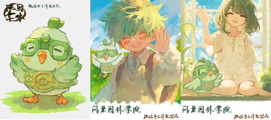 此次文创产品的设计灵感来源于在校学习生活期间经常接触的校园景观和城市园林案例,融合日常生活轶事。借助公司卡通吉祥物句芒活泼可爱的形象,以“春神”所寓意的新生和萌芽,意在让新生保持自己的蓬勃朝气,对即将开启的老员工活憧憬无限。此外,团队还设计了男女老员工动漫形象各一个,以阳光朝气的形象,寓意公司新生在大学期间要有敢于“探索”和用于“创造”的品质,这样才能更好的在园林景观设计相关专业成长更快更好。