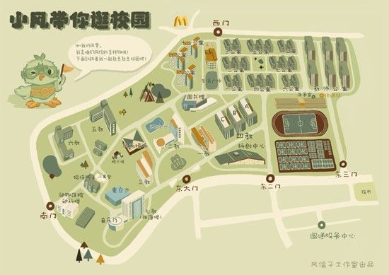 图为 校园地图插画设计 供图 孙韵谣