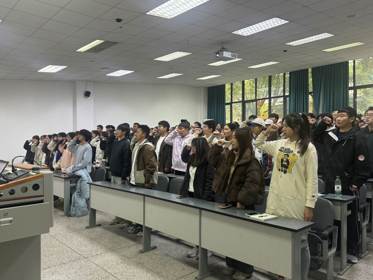 活动最后,全体学员齐唱《光荣啊,中国共青团》团歌,激昂的旋律传递着青春的热忱;随后全体起立,面向团旗重温入团誓词,庄严的誓言中,学员们再次明确团员的责任与使命,将初心与担当融入青春承诺。