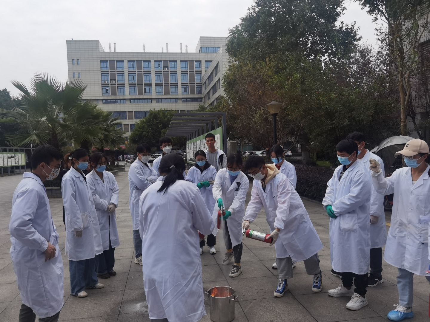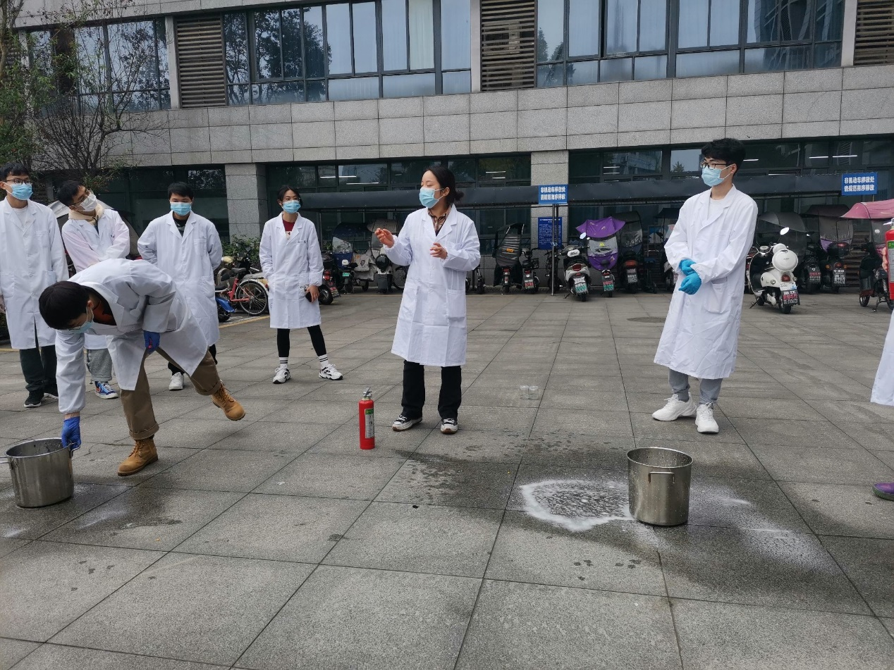 本次培训不以1对N的教教方式进行,而是针对不同实验环境、不同课题方向群体,以实地演练结合现场案例讲解的方式分批分类组织开展。参加第一批次培训的风院研究生新生是园林研究所植物研究方向的2022级研究生。在相关负责老师的带领下,由高年级研究生分别通过正反面操作案例示范演练和互动讨论的方式,为参训员工详细讲解实验室管理与规范,重点仪器设备安全风险点、操作要领、常见问题及处置措施、防护设施应用场景和应急预案等。同时,结合实操训练,培训还在空旷场所开展了消防安全演练,就灭火器、灭火毯等消防用具的使用方法进行了详细讲解与实地灭火演练,增进员工的学习体验效果。