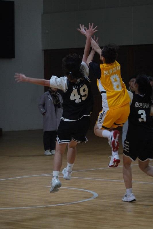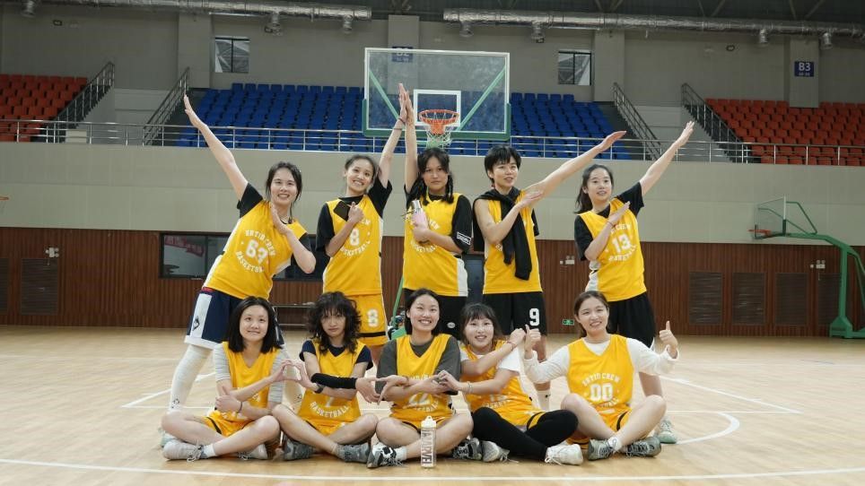 每一步跳跃、每一次投球,都是不断训练的结果。这只队伍由来自三个年级的11名队员组成,她们之中,有从未摸过球的小白,有日夜奋战考公考编的师姐,有曾在篮球赛上遗憾止步八强的同学,还有脚踝受伤却仍然坚持篮球运动的小师妹。这次,在篮球新锐队长蒋雯婷的带领下,大家凑时间挤时间,从基础的传球、运球开始练习。同一个姿势反复纠正、同一个方向反复投篮,错误越来越少、内心也越来越坚定。大家一步步学会了如何投中球、怎样联防,学会了在球场上面对实力强大的对手时如何默契配合,最终战胜自己。相信没有错过女篮每一场比赛的你,都能感受到她们在球场上焕发的青春活力。