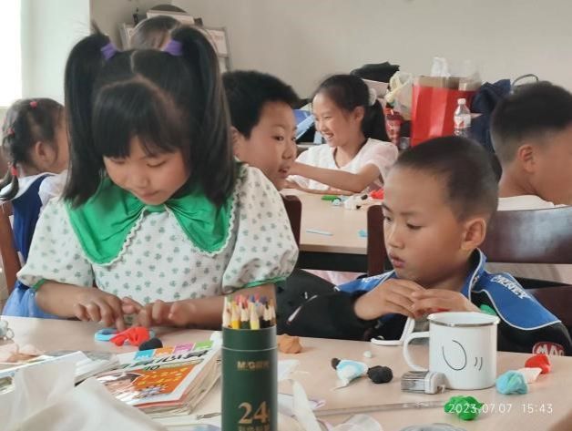 上午的课程在欢声笑语中度过,下午的IP设计课程更是思维火花的碰撞。志愿者为小朋友们讲解IP的定义和意义,鼓励小朋友发挥想象,用手中粘土,塑造自己心中对某个事务的形象,展现着独特的认知想象和创造力。志愿者们引导小朋友们发掘内心世界的奇妙,从简单的造型到复杂的细节,从身边事务到理想目标,每一次的突破都是一次心智的提升。惊呼、赞许、掌声是不是响彻教室。
