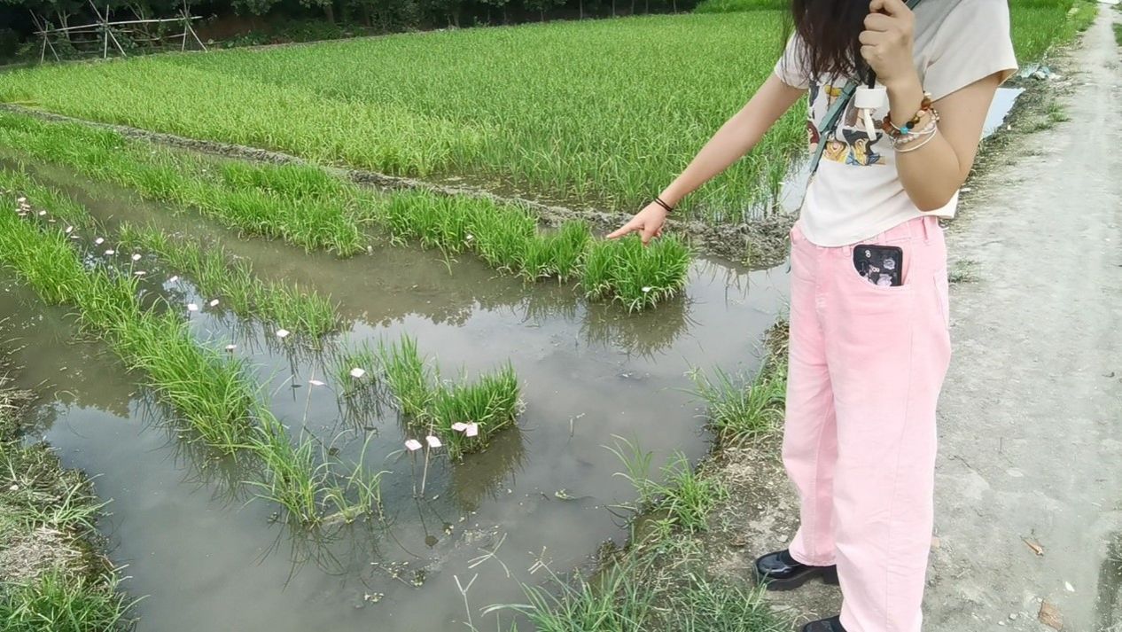 实践队员讲解实验田情况。通讯员 张凌琳 摄