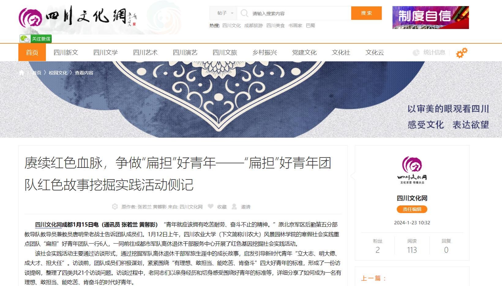 【媒体视角-四川文化网】赓续红色血脉,争做“扁担”好青年——“扁担”好青年团队红色故事挖掘实践活动侧记