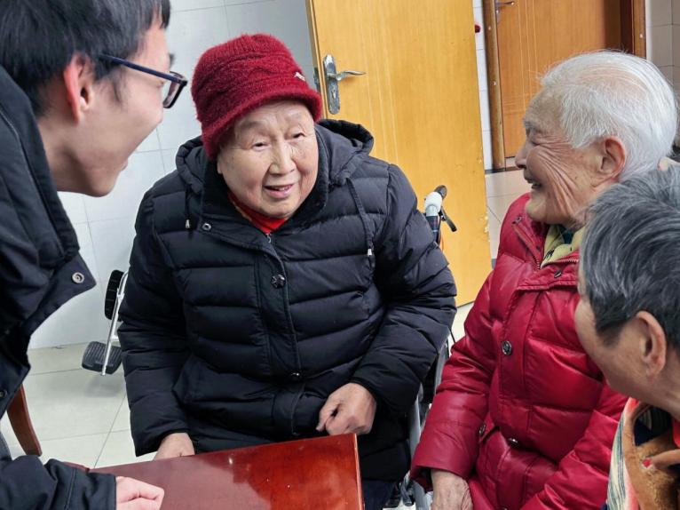 图为小游戏结束后团队成员和老人聊天 蒋忆清 供图