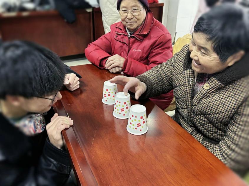 图为实践团成员和老人们一起玩小游戏 蒋忆清 供图