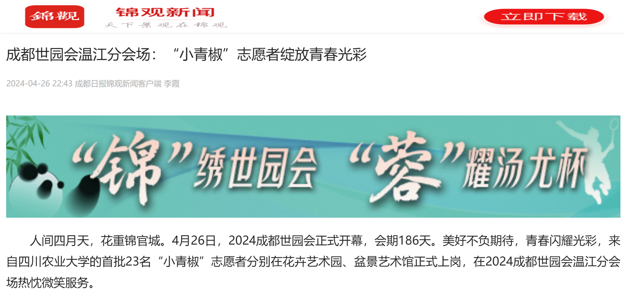 【媒体视角-锦观新闻】成都世园会温江分会场:“小青椒”志愿者绽放青春光彩