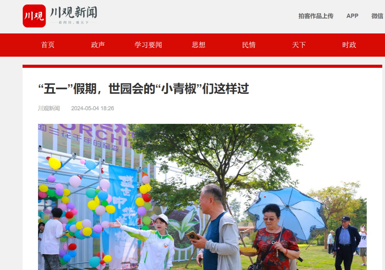 “五一”小长假,是成都世园会游园高峰,有一群和胡沈杰一样的四川青年,他们用实际行动诠释劳动节的含义和青年节的活力,他们有一个统一的名字——“小青椒”。