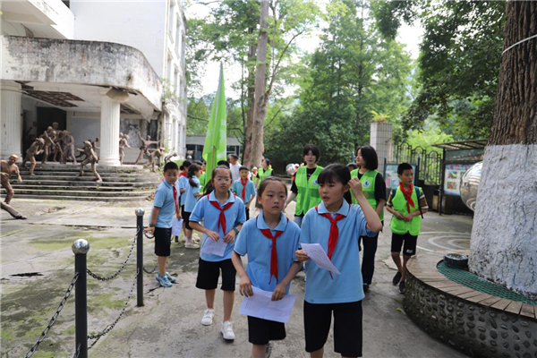 在“原白鹿公司”地震遗迹公园中,大家一起学习了解了地震相关知识,进行绿色旅游环保宣传;白鹿小学的同学们为青少年宫的孩子讲述“5.12”地震的英雄故事、参观地震科普馆和地震体验馆。而青少年宫的孩子们则为白鹿小学的同学们分享“古蜀人迁徙之路”等绿色研学旅行综合实践探究成果,相互的学习,“卷”起了同学们浓厚的研学兴趣。