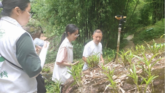 此外,企业提供的免费技术培训与订单回收机制彻底解决了产销难题。“技术有人教、产品有人收,我们只管安心种植,省心得很。”另一位种植户介绍道。团队成员调研石斛生长环境黄娅楠摄