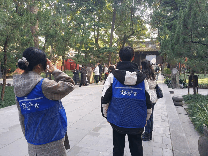 武侯祠既是承载忠烈精神的文化圣地,更是凝聚古典园林精髓的艺术瑰宝,在文化自信建设纵深推进的时代背景下,深挖其历史文化价值、彰显古典园林审美意蕴,同时引导游客文明游览,成为新时代青年践行社会责任的重要课题。此次实践活动以“探访+践行”为核心,队员们在沉浸式体验中体悟文化精髓,在志愿服务中传递文明理念,为文化遗产保护与文明旅游高质量发展注入青春动能。