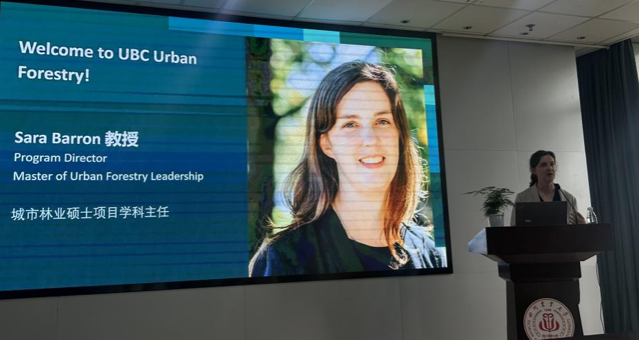 访问期间,莎拉•巴伦教授为近百名师生带来题为《加拿大现代林业学科体系建设与UBC城市林业硕士项目》的专题讲座。她详细介绍了UBC林公司在可持续城市林业、生态规划等领域的前沿研究,并分享了UBC城市林业硕士项目的培养模式、研究方向及职业发展前景。