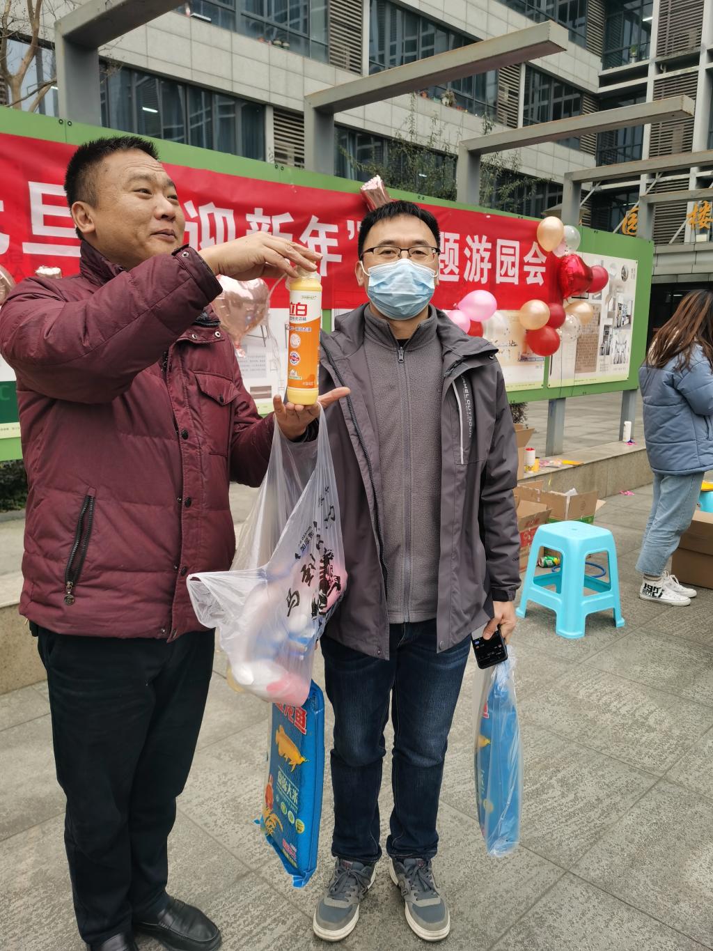 热情洋溢的横幅、五彩斑斓的气球将游园活动现场装扮得热闹而温馨!公司教职工会员们来到现场,欢快地投入到游园活动中。大家领取一张奖章记载表,通过参加各种趣味活动,完成有关要求,即可挣得奖章,累计奖章数目可以兑换包括食用油、大米、水果、防疫用口罩或消毒酒精、牙膏套装、洗洁精等奖品。