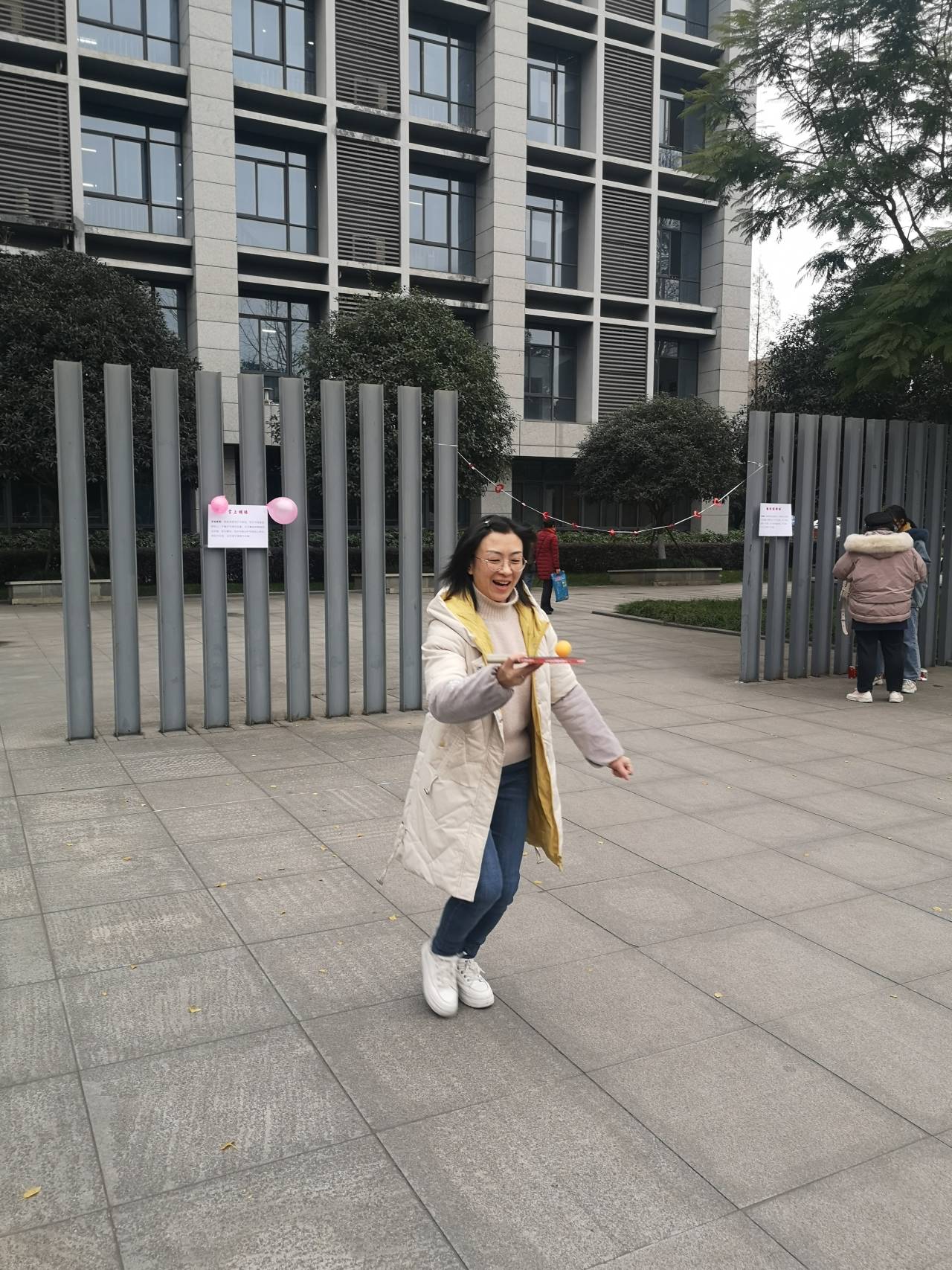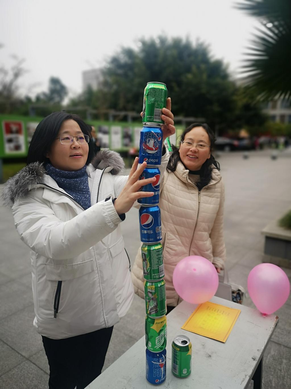 护宝前行活动现场,老师们拿着球拍,端着乒乓球,在保证球不掉下来的前提下,按照规定路线你追我赶;一气呵成既考验老师们的肺活量,也要有技巧才能完成。击鼓赛场就你争我夺,互不相让,欢声笑语不断,气氛热烈而祥和。趣味横生的游园活动丰富了教职工们文体生活,增进相互间的了解,增强公司凝聚力和向心力,以积极向上的精神风貌迎接2021新年的到来。